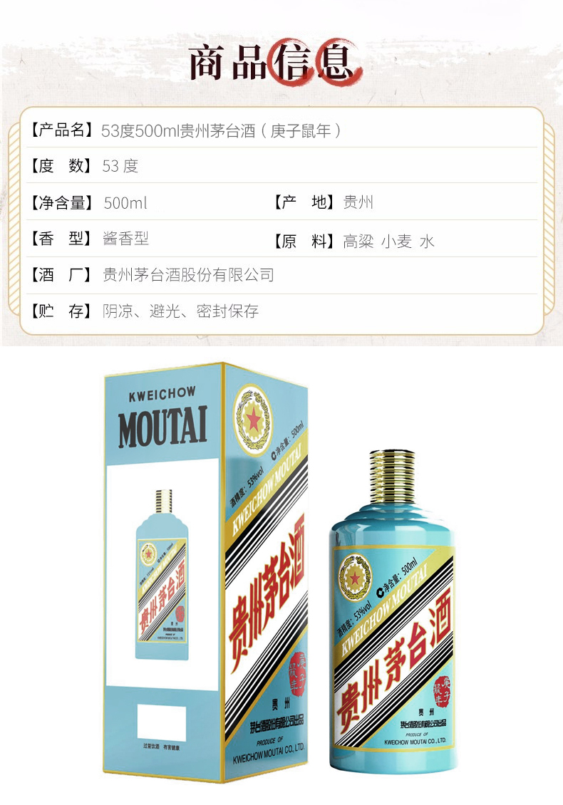 53°鼠年茅臺500ml 生肖紀念酒 醬香型 53度